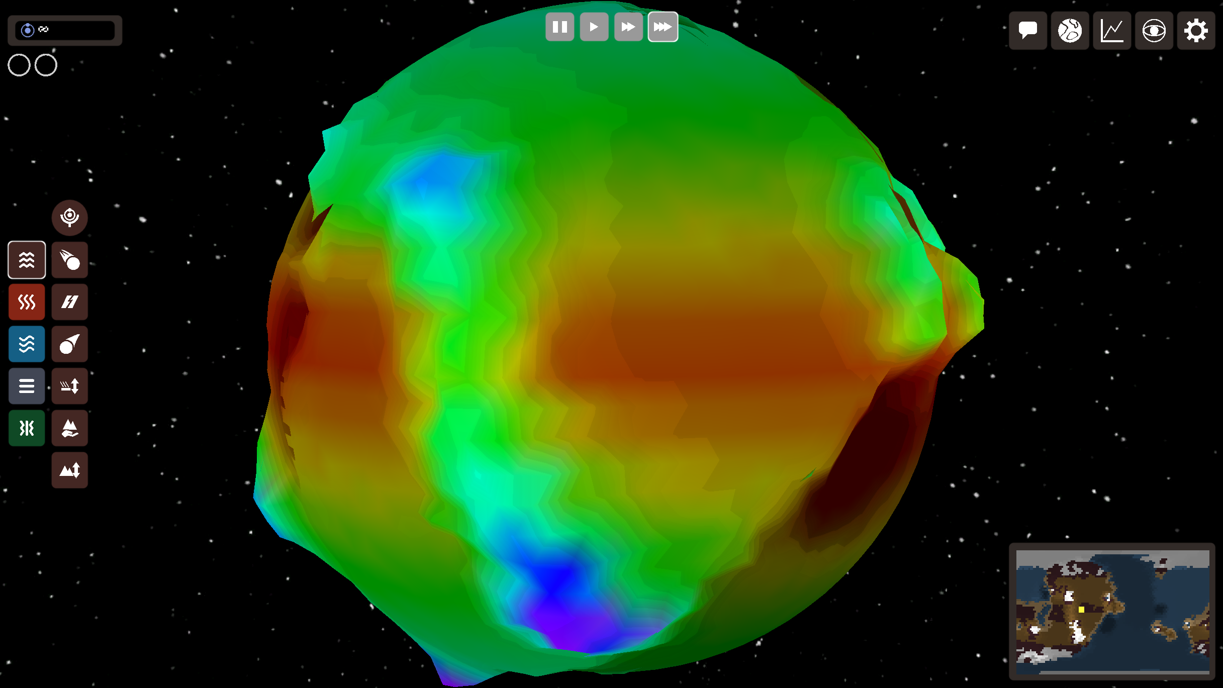 Manipulate climate, add plants and evolve creatures in this planet and life sandbox simulation game. From cells to civilisations, spread life throughout the whole planet. Or just enjoy watching your creation burn!